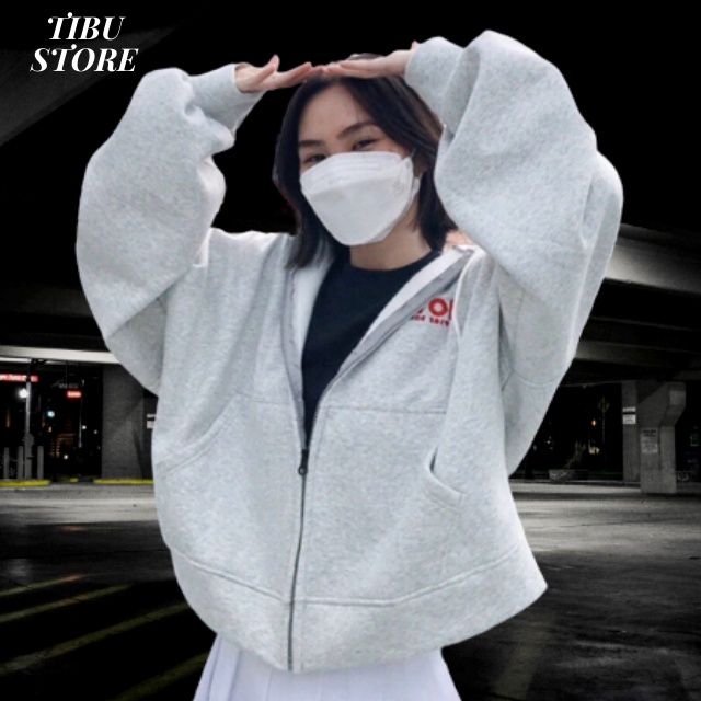Giới thiệu Áo Khoác Hoodie Nỉ OH.OH, Áo khoác nữ form rộng 2 màu trắng xám tay phồng Ulzzang Unisex TIBU