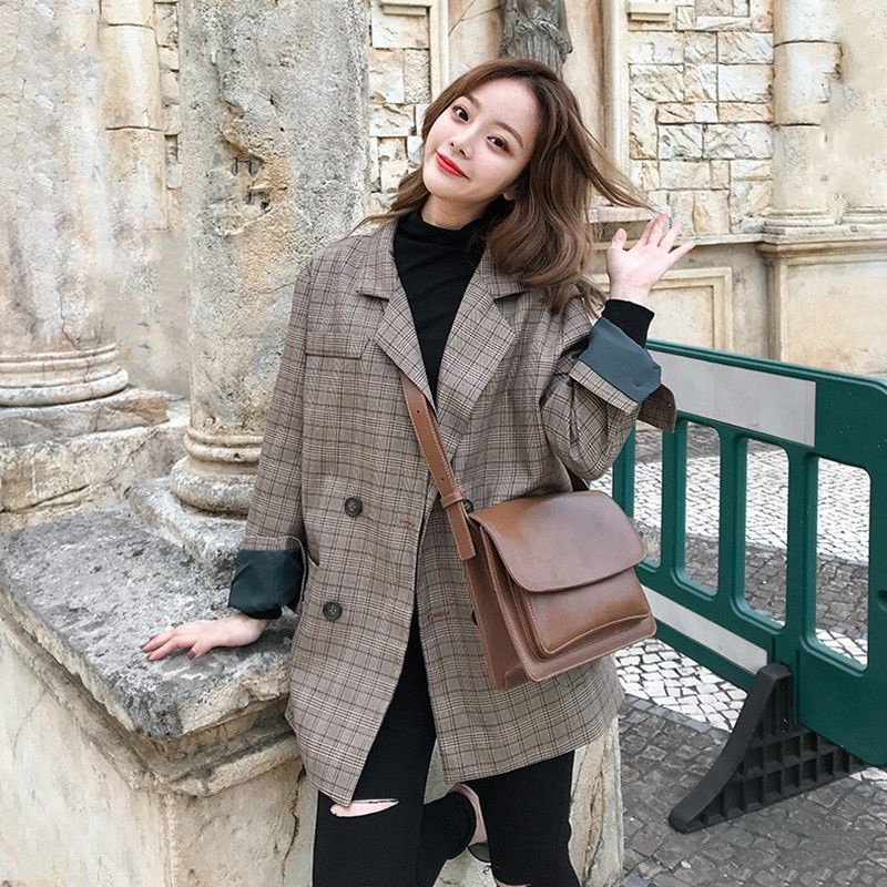 Thời Trang Nữ > Áo khoác, Áo choàng & Vest > Áo blazer > 📣📣👗Áo khoác Houndstooth👗Áo khoác vest dáng rộng kẻ sọc kiểu Retro Hàn Quốc thời trang xuân thu cho nữ