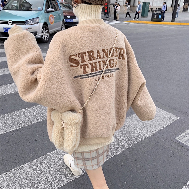 Giới thiệu Áo khoác IELGY giả len lông cừu dáng rộng họa tiết chữ thời trang dành cho nữ Thời gian giao hàng dự kiến cho sản phẩm này là từ 7-9 ngày