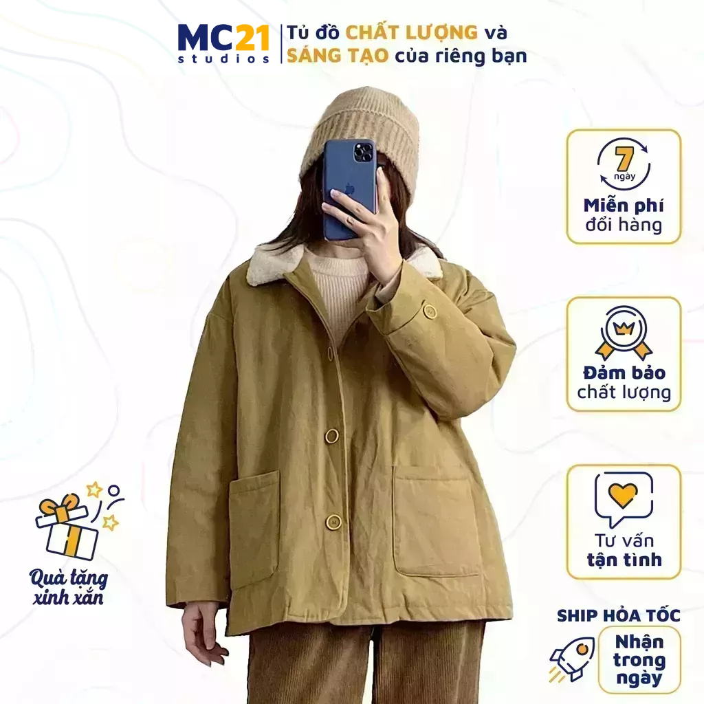 Giới thiệu Áo khoác kaki MC21.STUDIOS chần bông jacket form rộng Unisex nam nữ phong cách Streetwear Ulzzang Hàn Quốc A3421