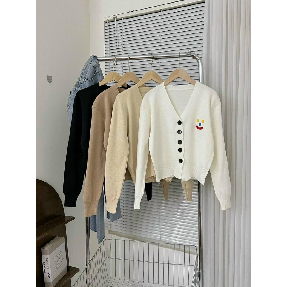 Giới thiệu Áo khoác len cardigan nữ tay dài 5 nút mặt cười