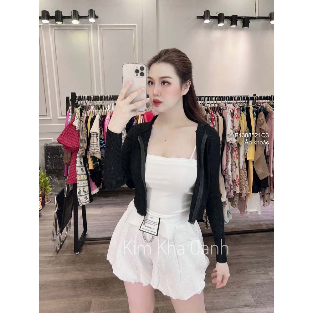 Áo khoác len dáng croptop có nón kéo khóa hai đầu tay dài hàng QC!