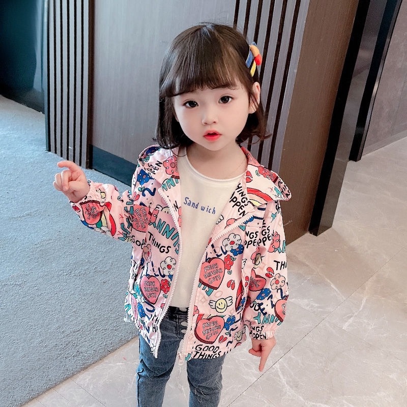Giới thiệu Áo khoác mỏng chống gió họa tiết hoạt hình phong cách phương tây cho bé gái