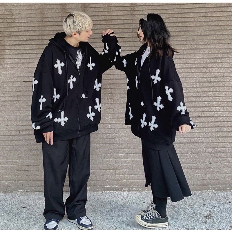 Giới thiệu Áo Khoác Nỉ Unisex Kéo Khoá Homies Liền Mũ In Hình Thánh Giá CROSS( Hàng Sẵn, Ảnh Thật)
