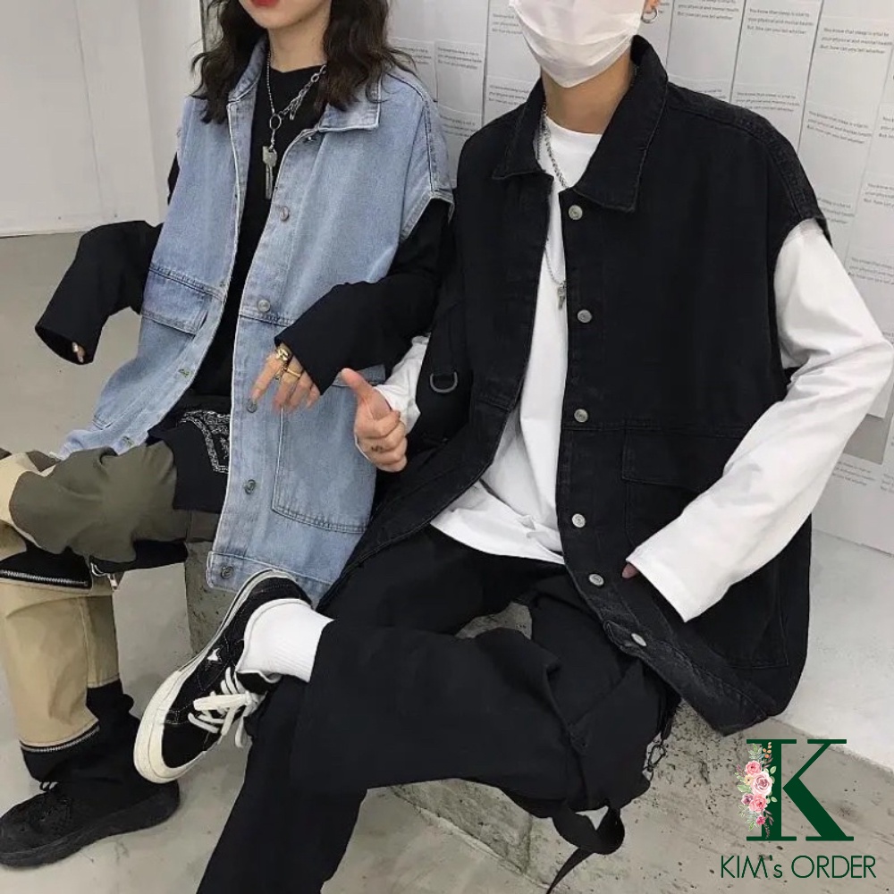 Thời Trang Nữ > Áo khoác, Áo choàng & Vest > Áo khoác ngoài > Áo khoác nữ jean màu xanh đen sát nách phom rộng nam nữ Unisex phong cách bụi bặm cực chất Ulzzang Hàn Quốc