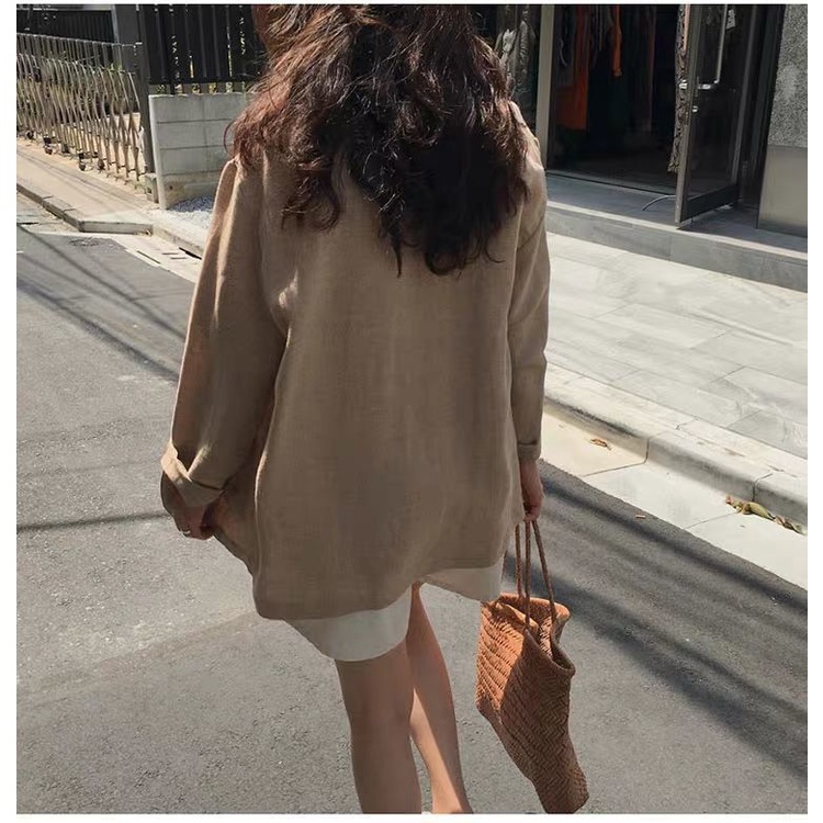 Giới thiệu Áo khoác RENJIANVSHENG 185247 vải lanh cotton phong cách Hàn Quốc thanh lịch cho nữ