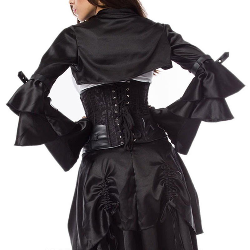 Phụ nữ Steampunk Bậc thang Áo khoác dài tay Cùm cho áo khoác Gothic Buckle Belt Lolita Satin Shawl Cropped Short Coat Cap Mô tả: