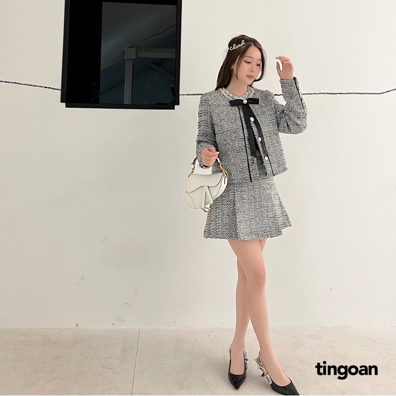 Giới thiệu TINGOAN® - Áo khoác tweed xám viền tua rua cổ tingoan FORGET ME NOT JACKET/GR