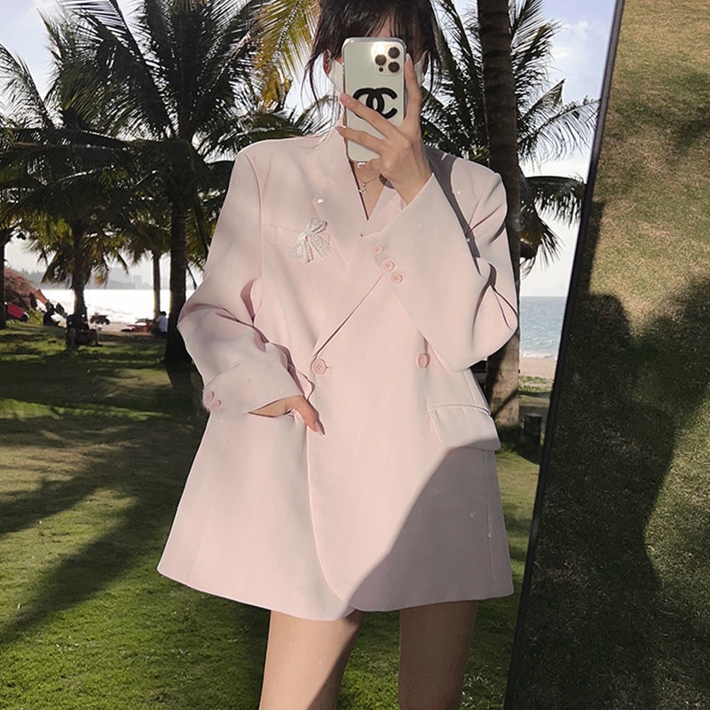 ﹉✠Áo Khoác Vest Hai Hàng Nút Cài Màu Hồng Phong Cách Anh Quốc Cao Cấp Thời Trang Xuân Thu 2022