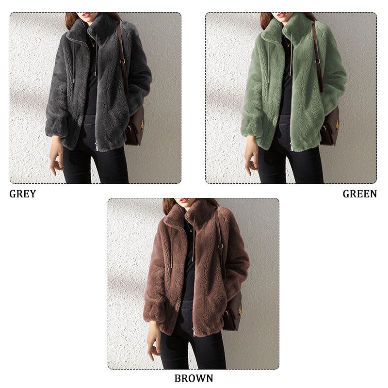 Xuất xứ: Quảng Châu Phong cách: Công sở Họa tiết: Màu trơn Phong cách: Áo khoác Kiểu dáng: Rộng Chiều dài tay: Tay dài Kiểu cổ: Cổ bẻ Kiểu khóa: Dây kéo Độ dày: Phủ nhung Các chi tiết phổ biến: Đường may khâu, trang trí ba chiều, mẫu 3D/ ba chiều Chất vải: Sợi polyester (polyester) 30% -50% Màu sắc: Xám, xanh lá, nâu Kích thước: M, L, XL, 2XL, 3XL Phong cách: Công sở khí chất