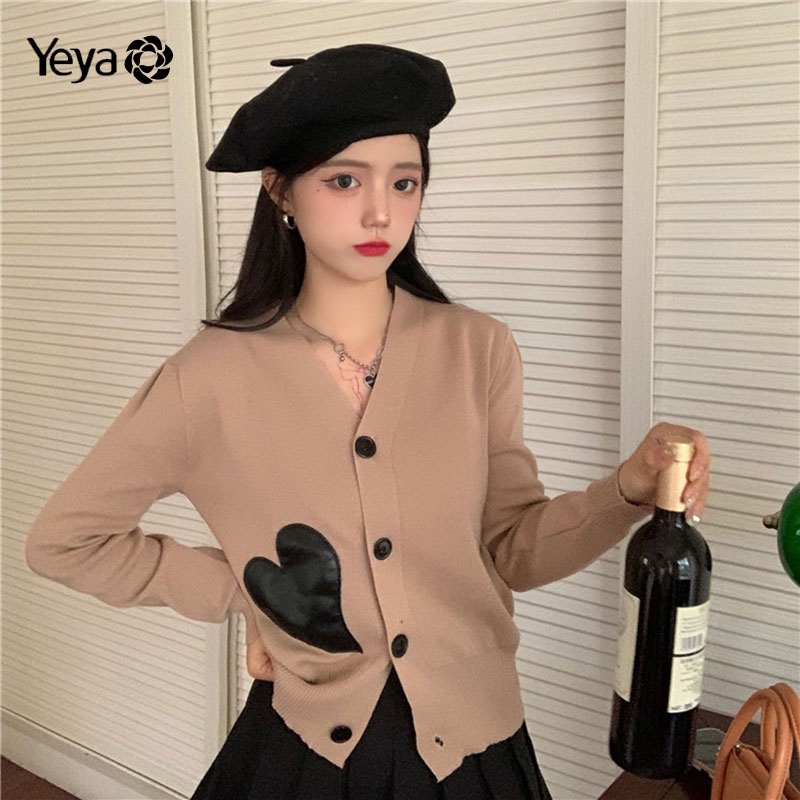 Giới thiệu Áo khoác YEYA tay dài dệt kim dáng ngắn phong cách Hàn Quốc thời trang dành cho nữ
