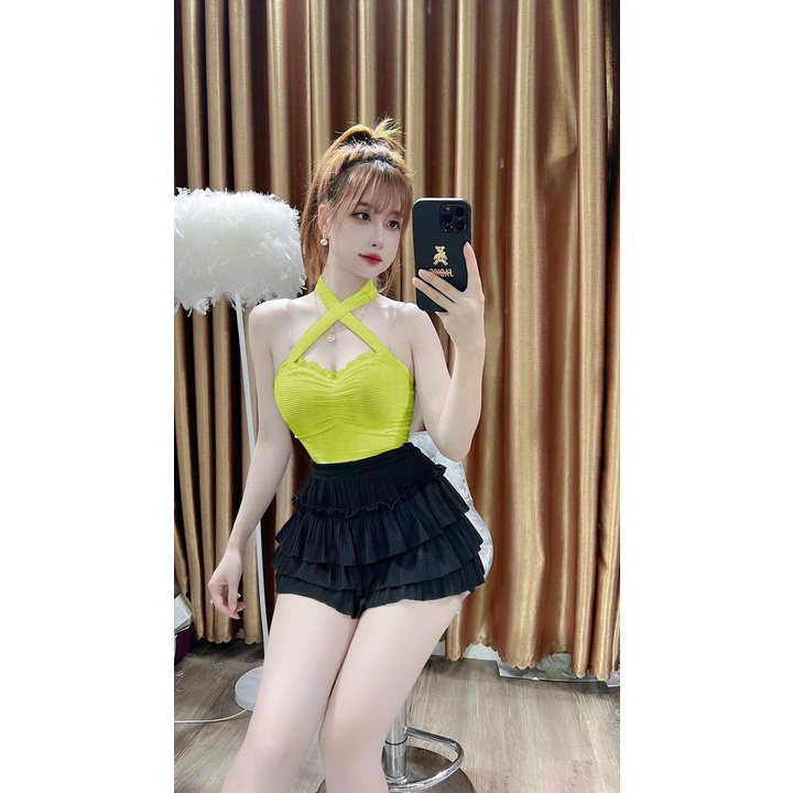 Áo kiểu 2 dây chéo cổ viền ren có mút cực xinh , chất thun gân mềm mịn