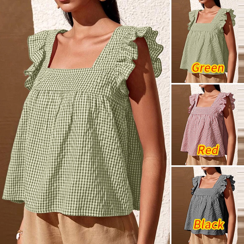 Giới thiệu Áo kiểu babydoll Zanzea cổ vuông tay phồng họa tiết sọc caro phong cách Châu Âu thời trang cho nữ