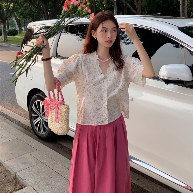 Giới thiệu Áo kiểu BH tay ngắn cổ chữ V phối ren thời trang mùa hè 2022 cho nữ