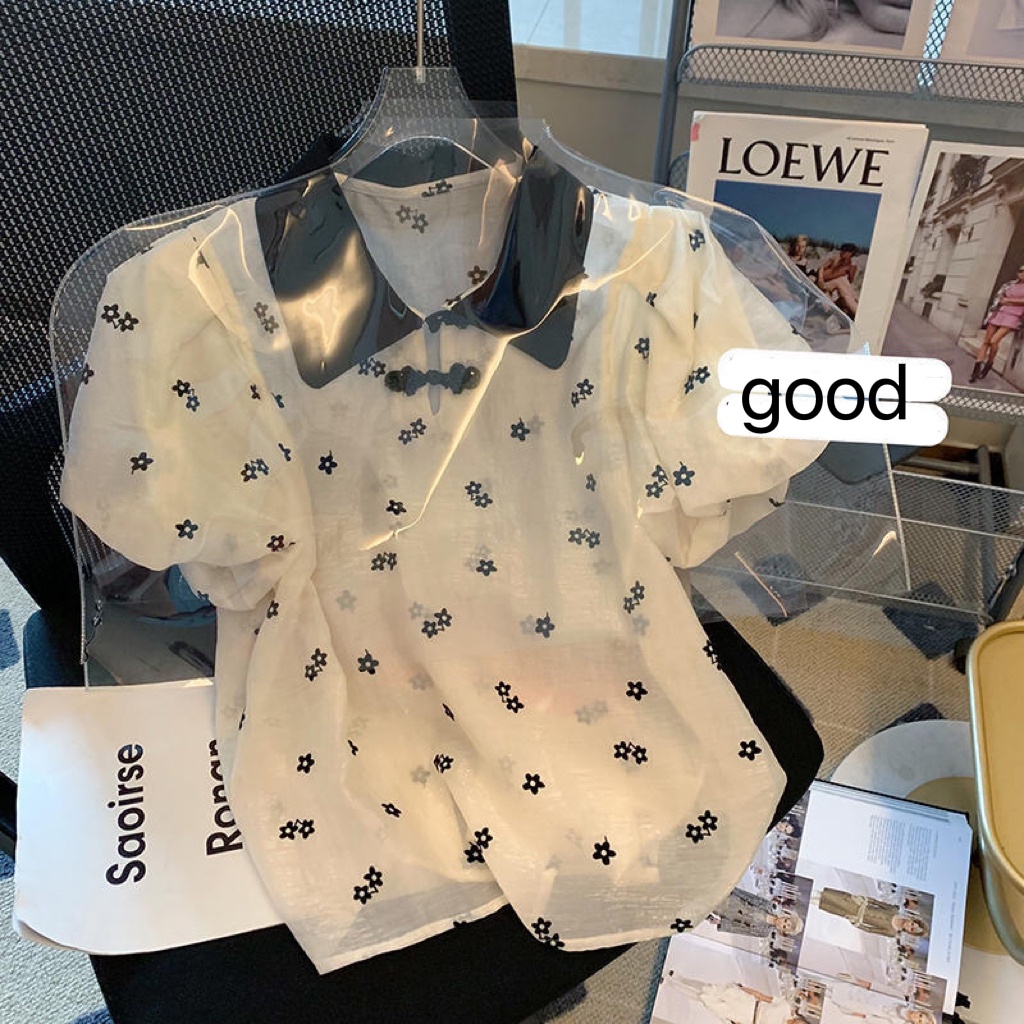 Giới thiệu Áo kiểu BH tay phồng ngắn in hoa phong cách Pháp cổ điển thời trang cho nữ