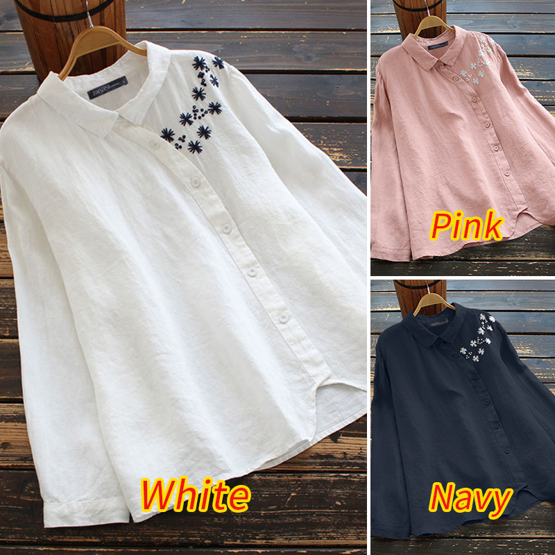 Giới thiệu Áo Kiểu Cài Nút ZANZEA Tay Dài Cổ Bẻ Thêu Hoa Cho Nữ