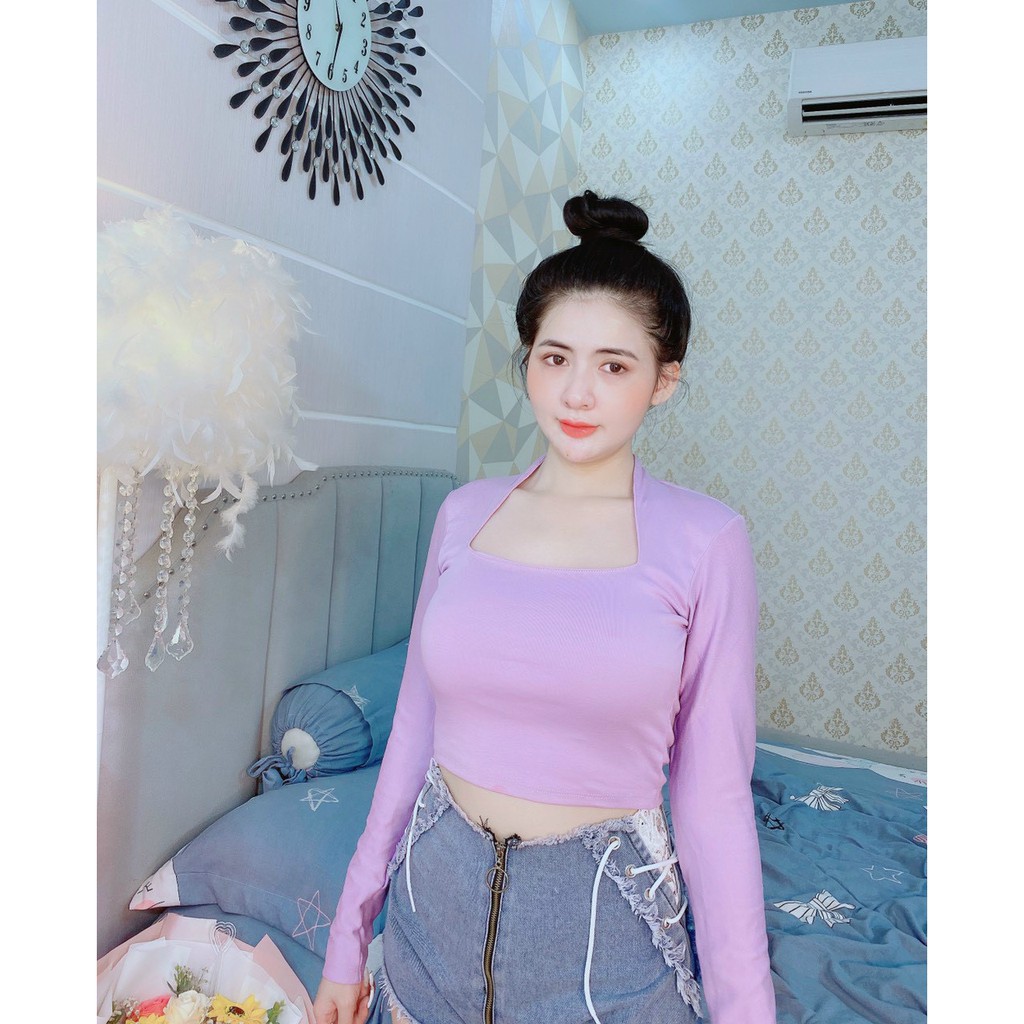 Giới thiệu Áo kiểu croptop tay dài ôm body cổ U cực hot , chất thun bozip mềm mịn mát