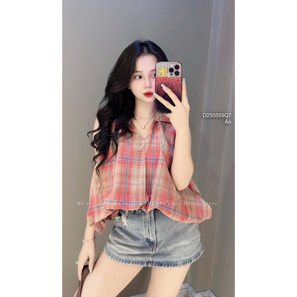 Giới thiệu Áo kiểu kẻ caro cổ bẻ sơ mi sát nách phối thân phồng bí!