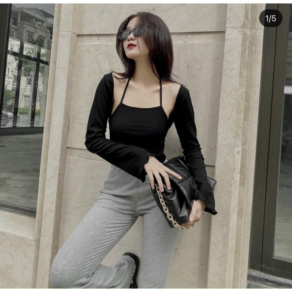 Giới thiệu áo kiểu mix yếm trong áo tay dài ngoài lạ đẹp ảnh thật chất thun mềm na