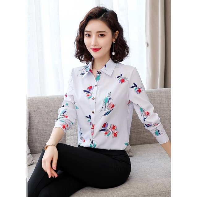 Giới thiệu Áo kiểu nữ Hàn Quốc hoa nhí cổ tròn suông tay lỡ A67