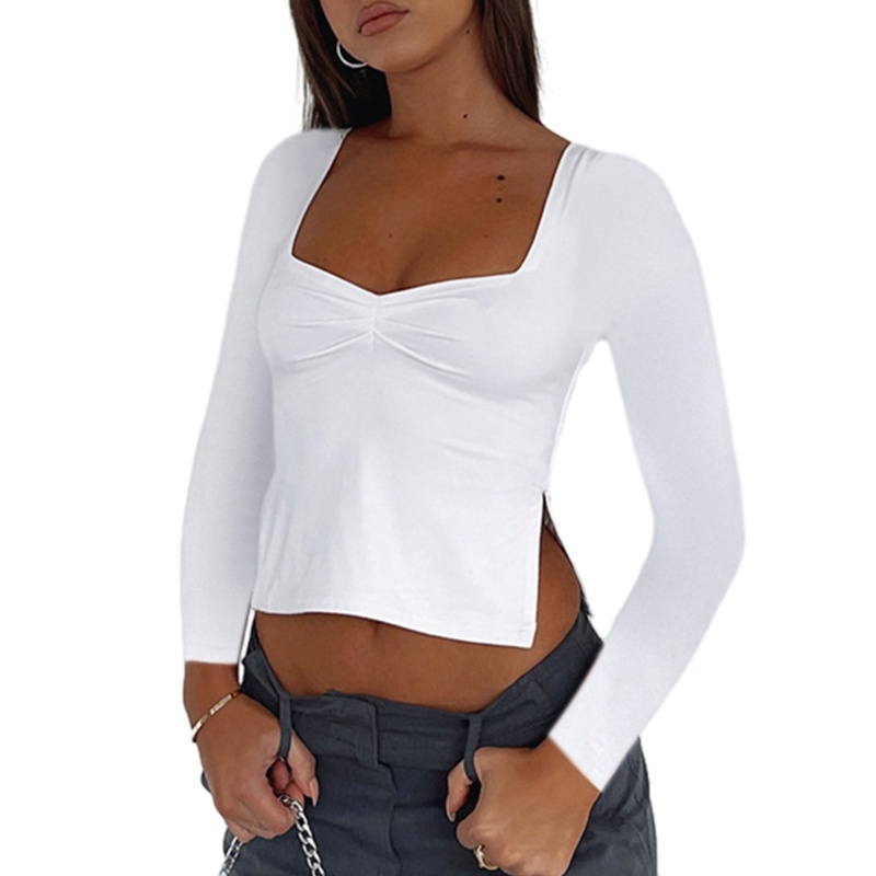 Bodycon Soft Square Collar Tops Ruffle Pleat Dài tay vải cho phụ nữ Đặc điểm - Nổi bật trong thời trang với chiếc áo thun dài tay này có thiết kế xẻ tà bên hông độc đáo và những nếp gấp tinh tế. Được làm bằng sợi polyester chất lượng cao, chiếc áo này mềm mại, thoáng khí và chống nhăn để dễ dàng chăm sóc. Hoàn hảo cho những phụ nữ thời trang tiến bộ, những người đánh giá cao quần áo chức năng và linh hoạt có thể mặc lên hoặc xuống. Cho dù bạn đang đến văn phòng, gặp gỡ bạn bè cho bữa sáng muộn hay chạy việc vặt, chiếc áo này là một sự lựa chọn tuyệt vời. Nâng tầm tủ quần áo của bạn với chiếc áo hiện đại này kết hợp tốt với quần jean, váy, v.v.Áo thun dài tay. xẻ tà, xếp ly. polyester. đa năng.