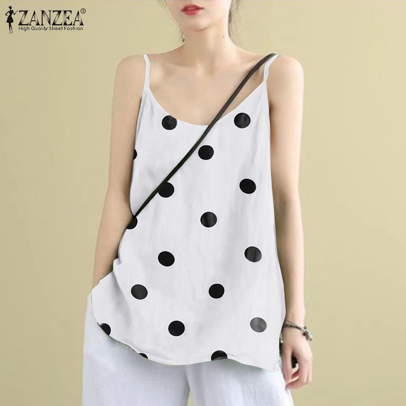 Giới thiệu Áo kiểu sát nách Zanzea cổ tròn họa tiết chấm bi dành cho nữ