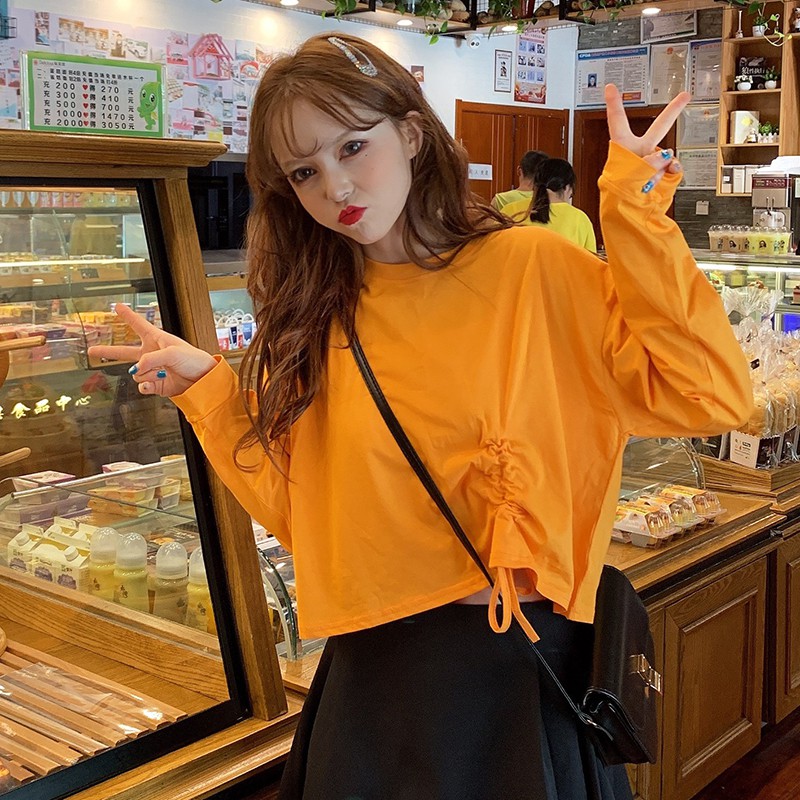 Áo kiểu tay dài cổ tròn thiết kế dây rút thanh lịch