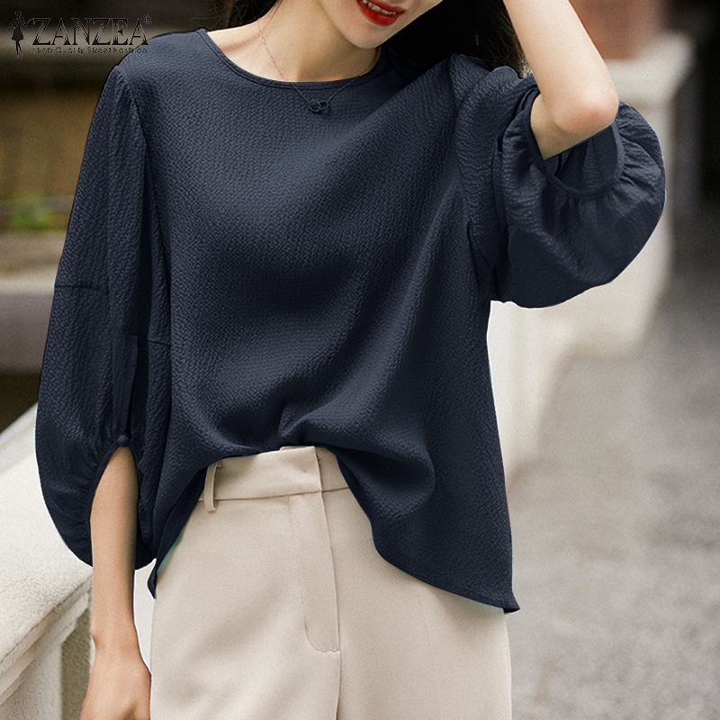 Giới thiệu Áo Kiểu Tay Phồng Cổ Tròn 3 / 4 Màu Trơn Thời Trang Cho Nữ ZANZEA