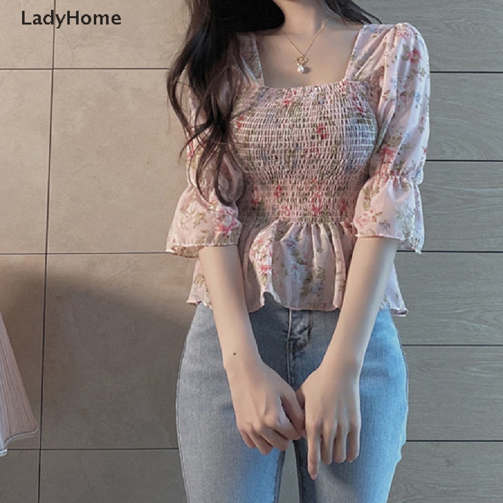 Giới thiệu Áo Kiểu Tay Phồng Ngắn Cổ Vuông In Họa Tiết Hoa Phong Cách Hàn Quốc Thời Trang Mùa Hè Cho Nữ