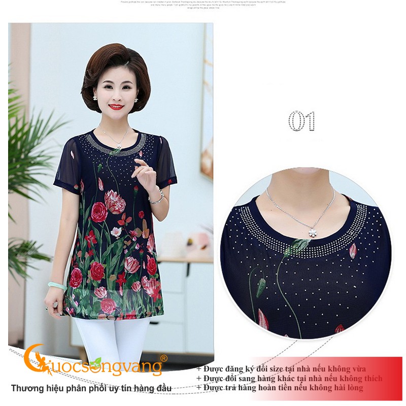 Giới thiệu Áo kiểu trung niên big size in hoa áo nữ dáng dài đính cườm Queenbe GLA258 Cuocsongvang