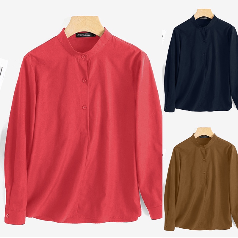 Giới thiệu Áo kiểu Zanzea cổ tròn cài nút phía trước dáng rộng thời trang dành cho nữ