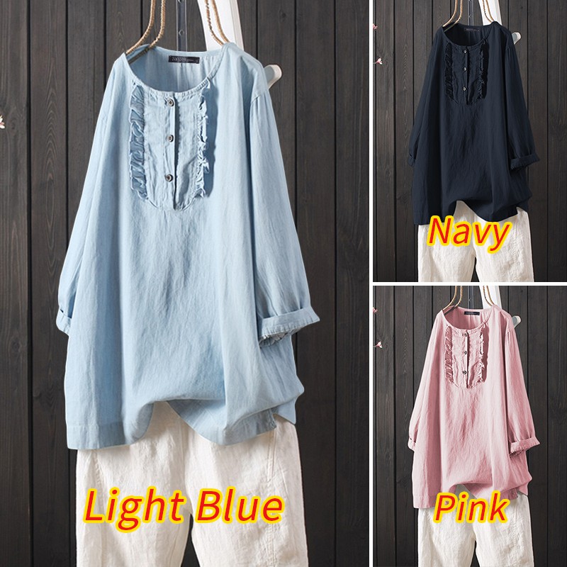 Giới thiệu Áo Kiểu ZANZEA Dài Tay Cổ Tròn Thời Trang Hàn Cho Nữ