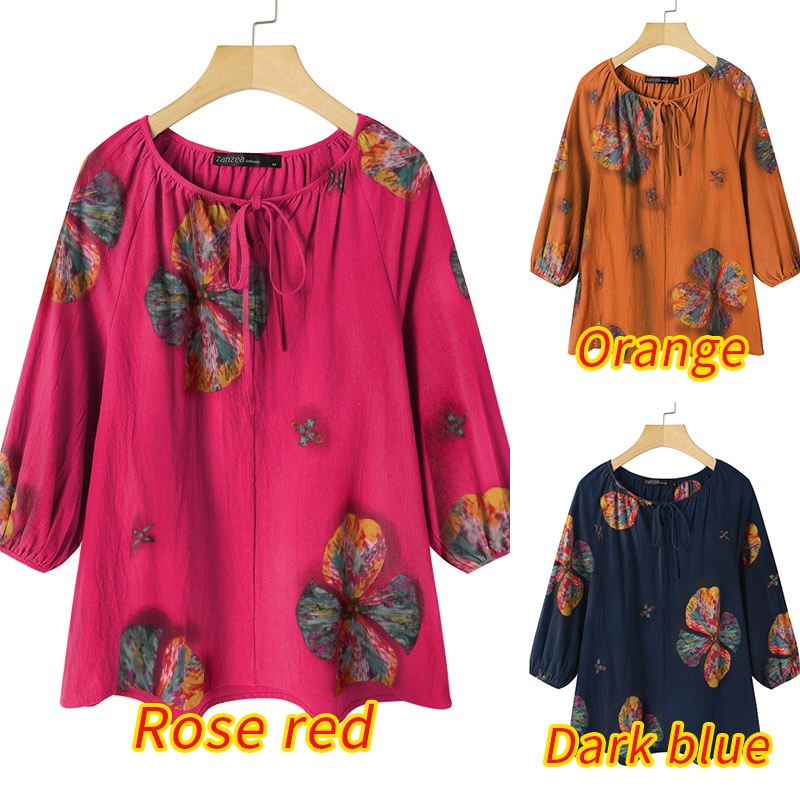 Giới thiệu Áo kiểu ZANZEA dáng rộng tay áo 3/4 in họa tiết hoa phong cách cổ điển cho nữ