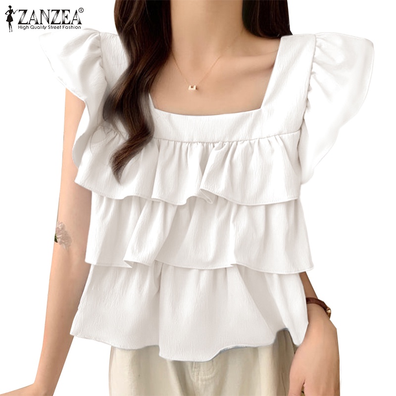 Giới thiệu Áo kiểu ZANZEA không tay cổ vuông xếp ly điệu đà phong cách Hàn Quốc cho nữ