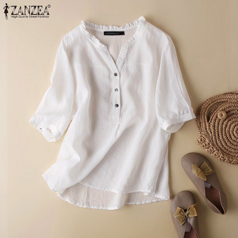 Giới thiệu Áo kiểu ZANZEA ngắn tay cổ chữ V màu trơn thời trang cho nữ