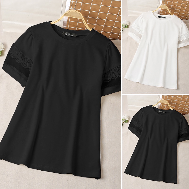 Giới thiệu Áo kiểu ZANZEA tay phồng phối ren màu trơn thời trang đường phố cho nữ