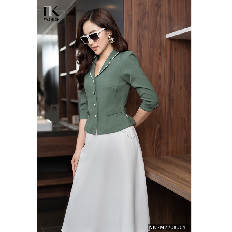 Giới thiệu Áo Ký Giả Peplum NK Fashion Thiết Kế Tay Lỡ Cổ Phối Ren, Chất Liệu Nhập Hàn Mềm Mịn NKSM2208001