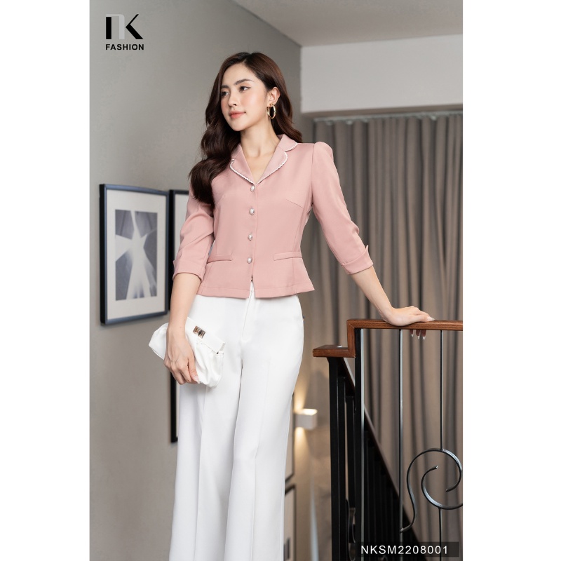 Áo Ký Giả Peplum NK Fashion Thiết Kế Tay Lỡ Cổ Phối Ren, Chất Liệu Nhập Hàn Mềm Mịn NKSM2208001