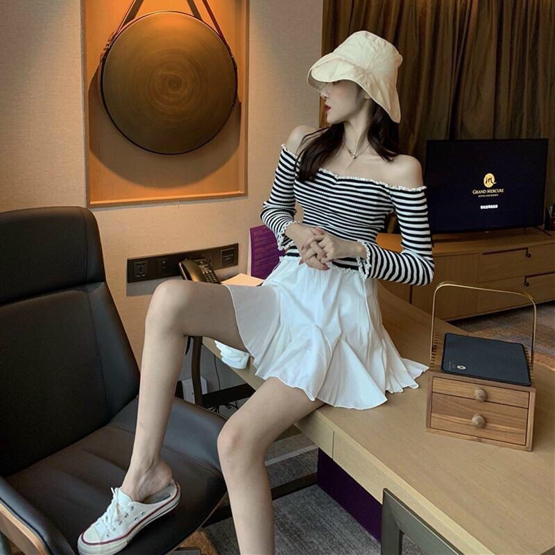 Giới thiệu Áo len kẻ mỏng mặc trễ vai hoặc cổ vuông