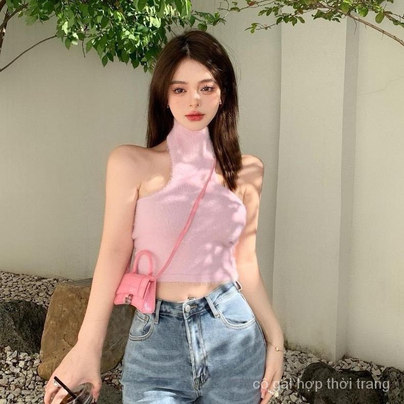 Retro New Mink Fur Halter Cổ Vest mùa thu Không tay Bên trong Phụ nữ Dây treo của phụ nữ Cổ cao cổ dệt kim chặt chẽ