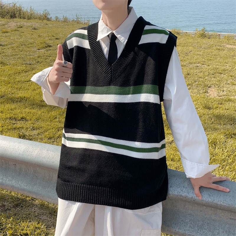 Giới thiệu Áo Len Không Tay Cổ Chữ V Dáng Rộng Họa Tiết Kẻ Sọc Phong Cách Hàn Quốc Thời Trang Cho Nam Và Nữ