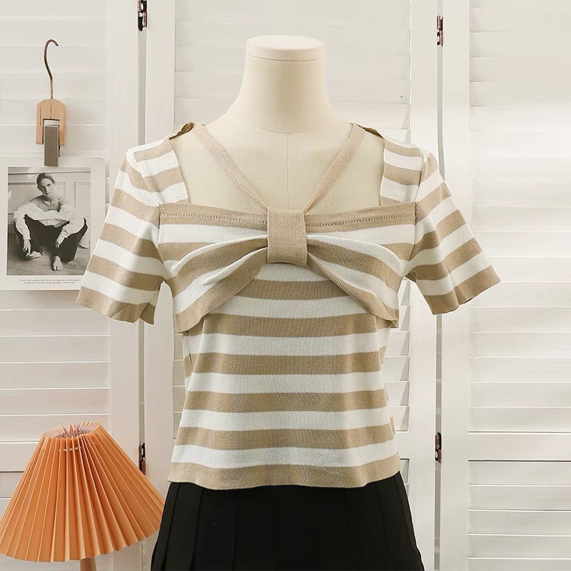 Giới thiệu Áo Len Kiểu Ôm Body Tay Ngắn Có Dây Nơ Ngực Sọc Và Trơn Nữ Tính | Smide Clothing