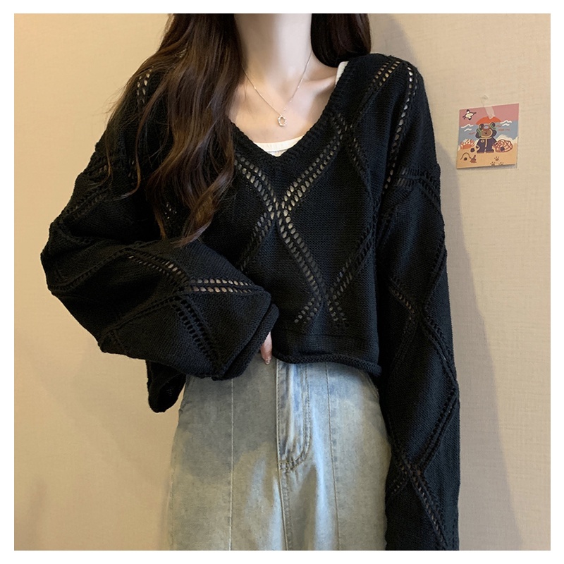 Giới thiệu Áo len lỗ dài tay croptop MINIONCLOTHING sweater form rộng oversize phong cách Ulzzang Streetwear Hàn Quốc A3503