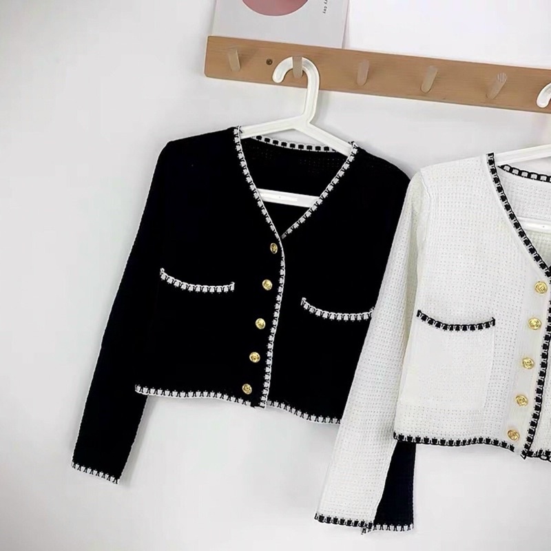 Giới thiệu Áo len mỏng dài tay cổ tim kiểu cardigan viền cúc dọc