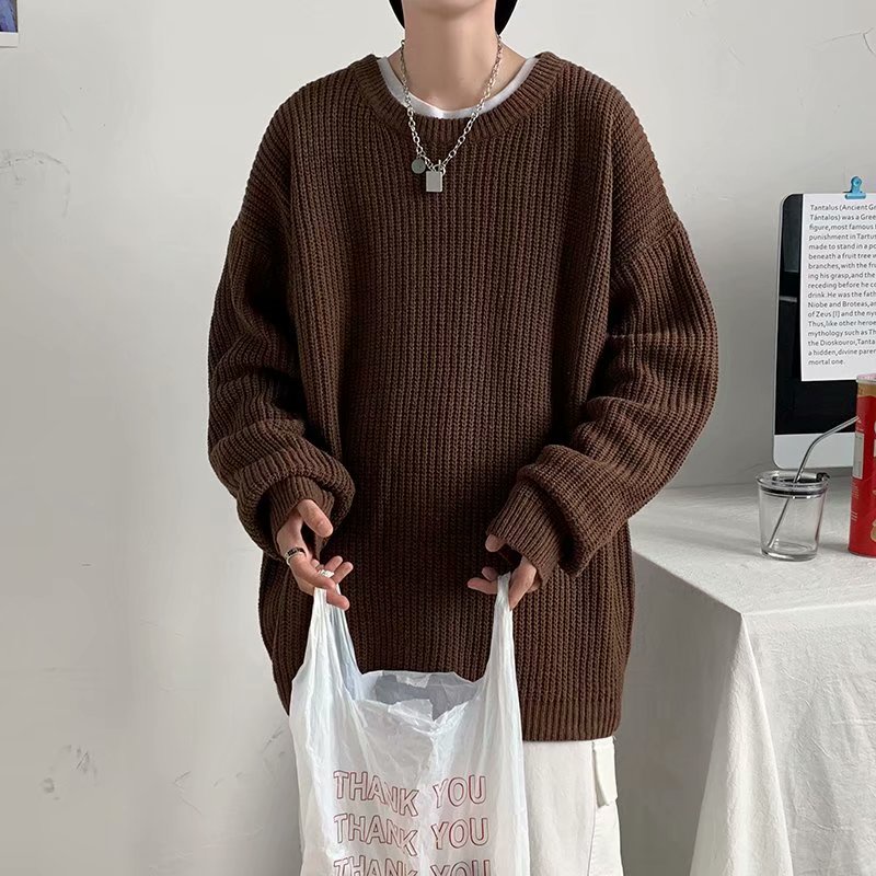 Thời Trang Nam > Áo Hoodie, Áo Len & Áo Nỉ > Áo Len > 【8 màu】Áo len nam tay dài cổ tròn màu trơn phong cách thời trang Hàn Quốc cho simple bigsize áo sweater form rộng unisex fashion sweater