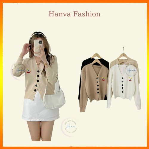 Giới thiệu Áo Len Nữ Cardigan Dáng Croptop Họa Tiết Mặt Cười Đáng Yêu Chất Len Dệt Mềm Mịn Hanva
