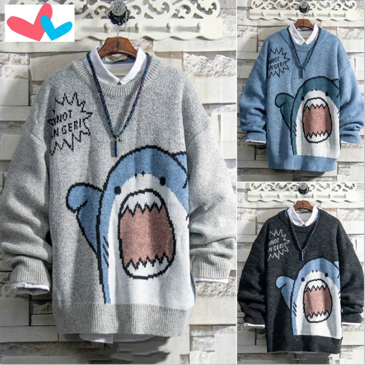 Giới thiệu Áo Len Nữ Cartoon Shark Round Neck Loose Korean Knit Ins Couple Sweater Men