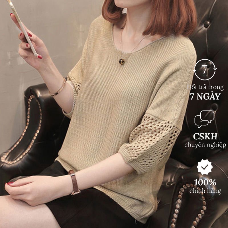 Giới thiệu Áo len nữ cổ tròn tay lỡ, áo len mỏng chất len tay lưới thời trang thu đông