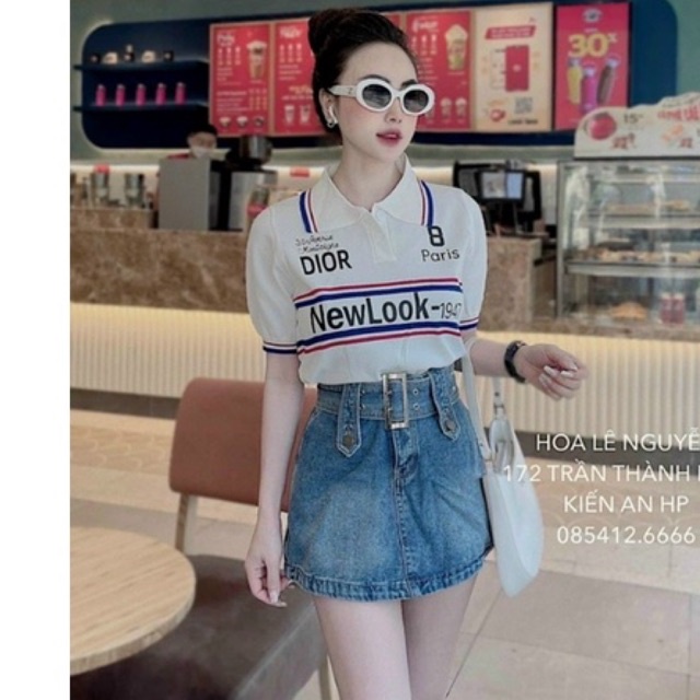Giới thiệu Áo len polo mỏng ngắn tay in chữ cổ viền, Áo kiểu cổ bẻ co giãn AL7806 - NhiNhi Shop