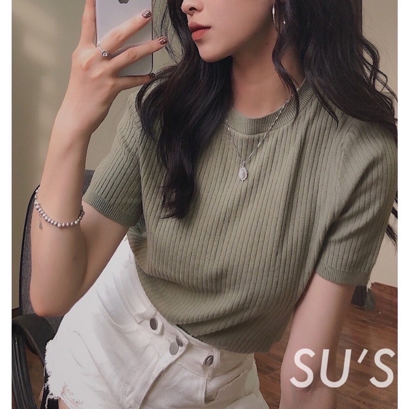Giới thiệu Áo len tăm đũa Hàn Quốc cực xinh hàng Quảng Châu, Áo Len Tăm Đũa Cộc Tay Dáng Ôm Cổ Tròn Basic